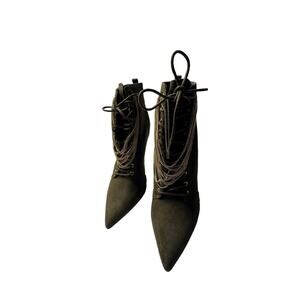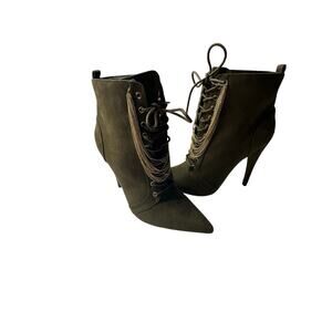 ShoeDazzle Green Suede lace up ankle Chain Size 9 women Stilettos pointed toe