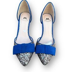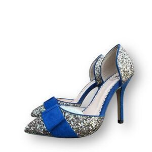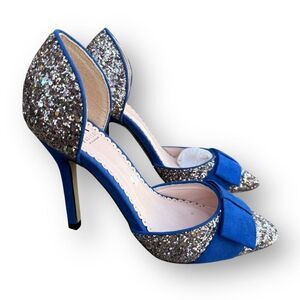 ShoeDazzle Royal Blue Silver Joanie Bow Glitter Pumps Women's size 6