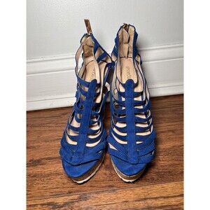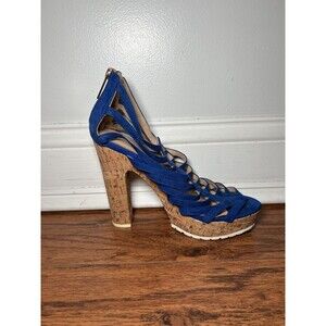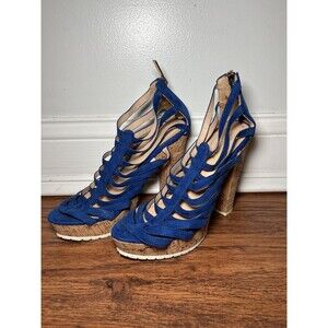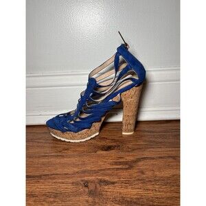 ShoeDazzle Shoes Womens Size 8 Blue Strappy Cork Platform High Heel Sandals Zip