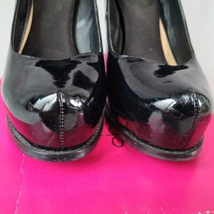 ShoeDazzle Womens Size 10 Black Block Heel Animal Print Patent Leather Pumps