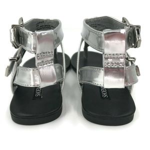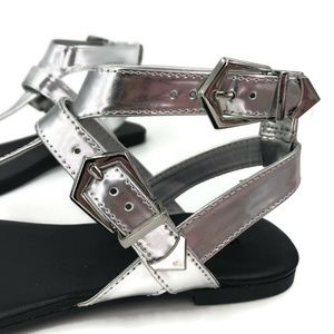 ShoeMint Womens T-Strap Sandals Size 6 Medium Ankle Straps Silver Buckle Closure, Style Harper