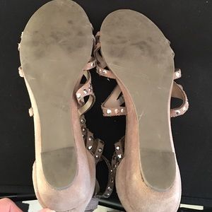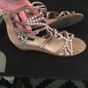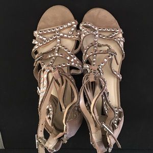 Taupe jeweled sandals. Worn once. Excellent condition. Zip up the back. Silver jewels/studs