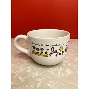 White "Friendship is the Sunshine thats makes People Grow" Shoebox coffee mug in great condition. 3.5" height and 4" diameter.