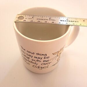 - Shoebox Greetings cup with "The next thing you say may be what puts me completely over the edge!"