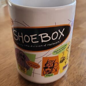 Excellent condition Shoebox cartoon coffee mug. Measures 4 1/2" tall with about 3 1/4" diameter