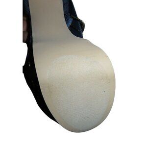 Shoedazzle Alana Chambray Blue Denim Studded Slingback Platform Heels size 8.5 t