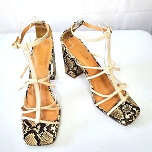 Shoedazzle Belva Strappy Block Heel Sandal Size 10 Snake Print Square Toe