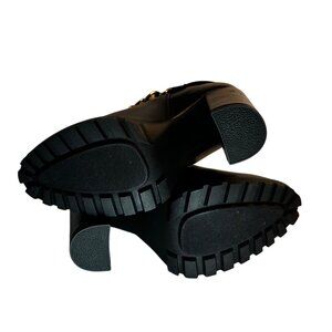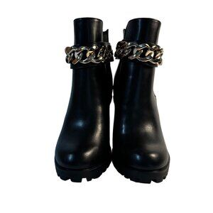 Shoedazzle Black Block Heel Ankle Booties 6.5 Gold Chain Mob Wife NWOB