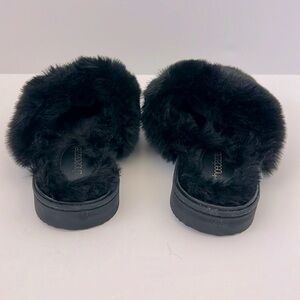 Shoedazzle Claudia Black Fuzzie Slipper Slides Size L (9-10)