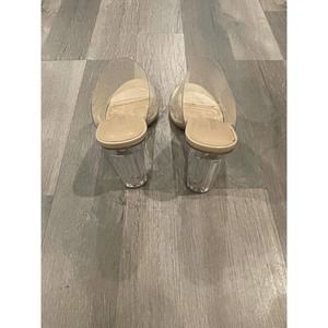 Shoedazzle Clear Top And Heel With Tan Bottom Open Back Mule Heels Sz 7
