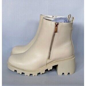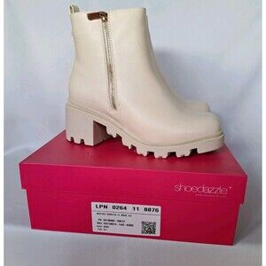 Shoedazzle Danilyn-E Bone Cream Faux Leather Lug Sole Bootie Y2K Zip NIB 8.5