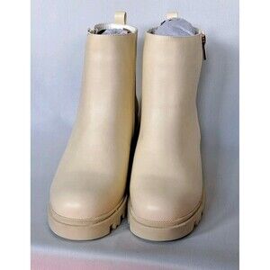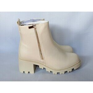 Shoedazzle Danilyn-E bone/cream color faux leather lug aole booties, Y2K style. Zip on sides.
