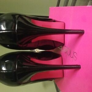 Black heels, original box. Great condition , think I wore them once.5 1/2" heel, 1" platform, easy to walk in if you're a heel wearer.