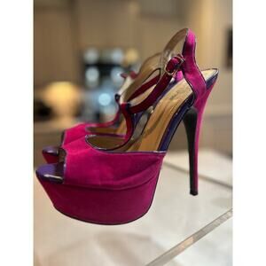 Shoedazzle Pink & Purple Strappy Platform Heels - Size 9