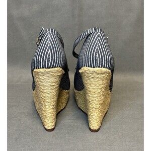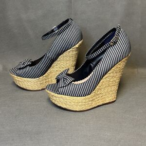 Shoedazzle Wedge Heels Size 9.5 US Navy/White w/Bow & Ankle Strap-New