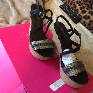 Black and sliver wedges perfect fit , only tried on never wore! Size 11 cute shoes! No box included, Make offer