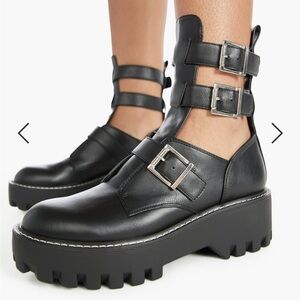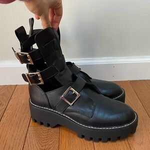 Love these boots!!! Super fun rocker chick style boots. Shoedazzle Sierra Buckle Bootie, Size 9, true to size. Please see photo for little marks on the inside of the boots. Worn once!!