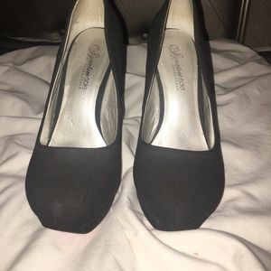 Black heels pink bottoms, cheetah print heels. Few scuffs not too bad. 1 1/2 inch platform 5 inch heel