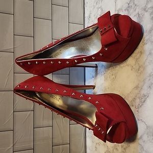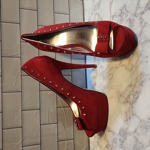 Amazing platform, peep toe heels from shoedazzle. Beautiful red color with silver pyramid spikes and bow detail. Very little wear on the bottoms. Size 9