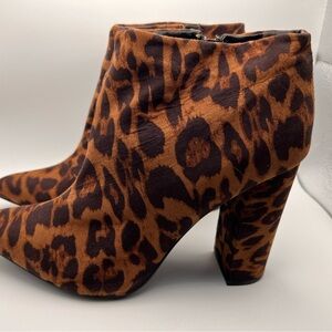 Step out in style with these chic leopard print ankle boots. Perfect for adding a bold touch to any outfit. Worn only twice Excellent Condition
