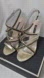 Peep toe heels, chain design, adjustable ankle straps, some marks in the inside of straps and insoles, close up pictures provided.