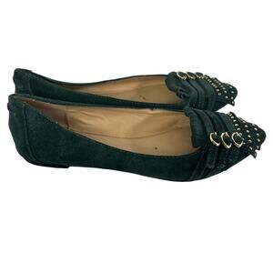 Shoemint Green Suede Gold Buckle Tassel Preppy Flats Size 6