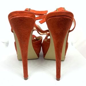 ShoeMint Mia Orange/Red Suede Peep Toe High Heels/ 6 inch hight