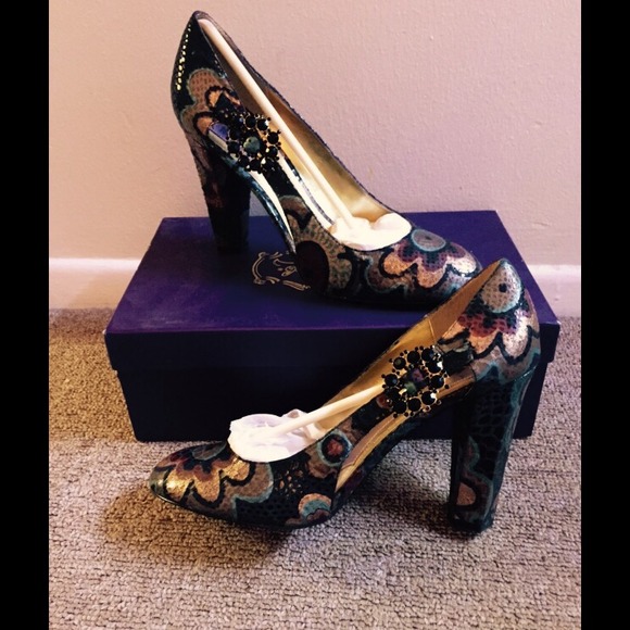 Gorgeous Multi color (blk, copper, gold, teal, burgundy ) design - lovely fancy buckle- only worn once ! In original box