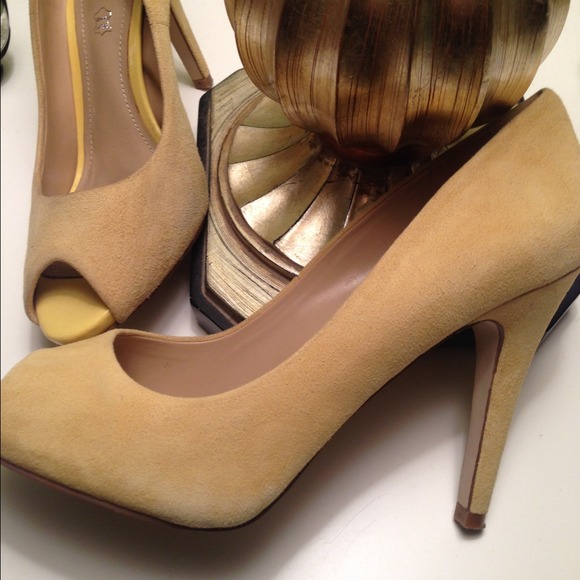 Aldo suede canary yellow peek toe pump