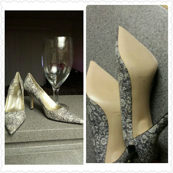 Nine West black and white with tiny dash of hold snake skin leather pattern high heels,bought never used Been in storage.size 9m