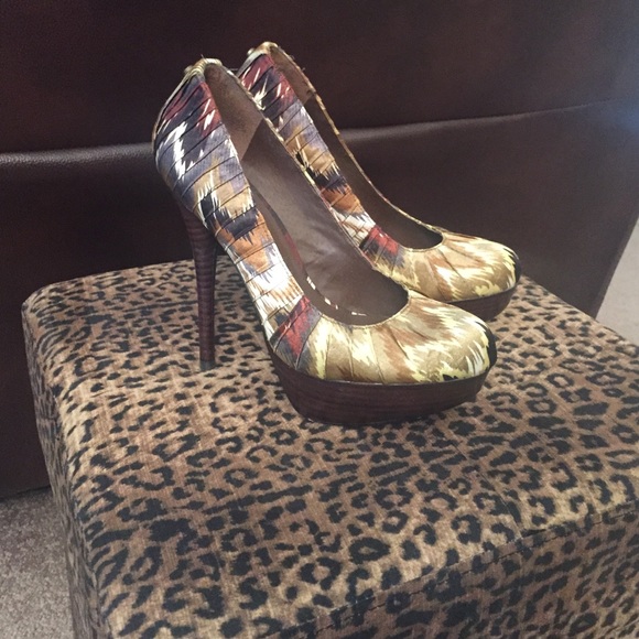 Hot and sexy heels that could match with anything because of all it's fun colors. These shoes are like brand new. I love them and bought them to wear to work however I don't sit down at work and I travel from classroom to classroom with the new program adopted by the school I work in so not shoes to wear for work for me. Awesome for going out but unfortunately I have a family now , kids and mama can't go out dancing anymore:( lol. Can't wear them with fam either running after kids!!
