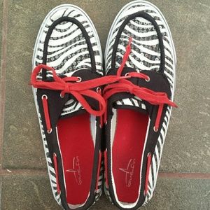 Sequence zebra shoes. Laces are red as well as the inside. Worn a couple times but look brand new & Very comfy (: