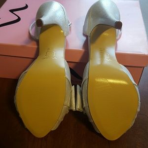 Size 9 Nina heels. New with box, no tags. Never worn. Sorry my lighting is not better. These are a really pretty light silver. The last pic shows the color the best.
