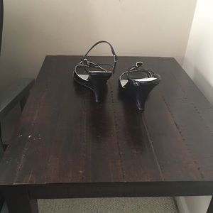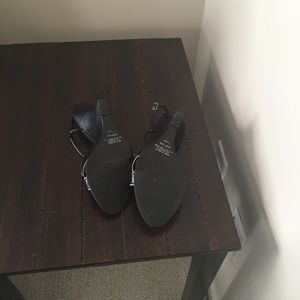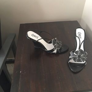 Carlos by Carlos Santana black leather sandals with a 3 1/2 inch wedge heel.