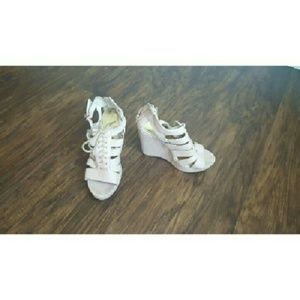 These wedges are perfect for the summer. They zip up in the back, and it also has strings in the front so that you can adjust them to fit your feet how you'd like them too.