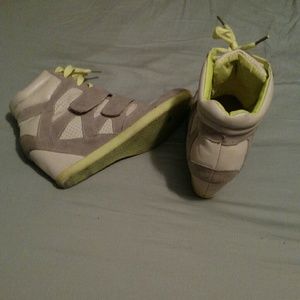 Heeled sneakers. Worn several times. Laces just need a wash but other than that they are in great shape.