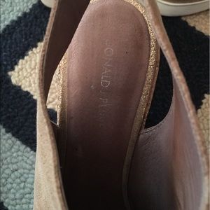 Donald J. Pliner peep toe, cork wedge with white sneaker sole.