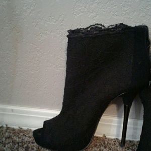 Black lace, ankle boot with peek a boo toe