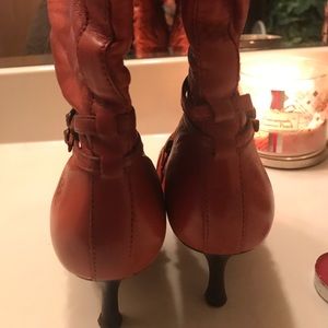 Beautiful leather Brazilian boots..burned orange..so comfy and stylish..lots of details on the boots..in a very good condition..little spot on the side u barely see..made in Brazil