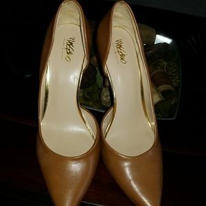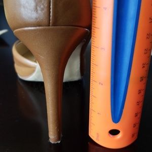 Hardly worn Mossimo tan heels with gold trim on inside of shoe. Nothing wrong with it, just not my size.