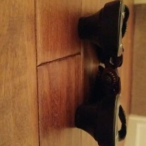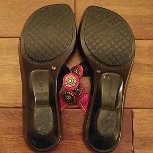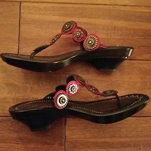 These DONALD J. PLINER Sandler are in amazing condition I love the bright red leather with gold circles. The soles are black. So great for summer fun!
