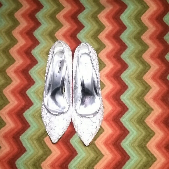 These are a nice pair of shoes that can be worn for different occasions. These shoes are silver with glitter on them. These shoes are also narrow. The size is a 11 medium. They are nice and comfortable with a low heel.