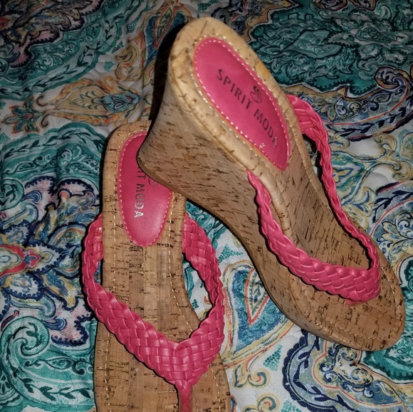 Soft fuchsia/salmon colored wedge sandal. Never worn