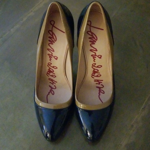 Navy/Blue and tan patent leather heels brand new never worn by LANVIN one of my favorite shoe designers, this particular shoe runs small will fit a perfect size 8 or 8 1/2