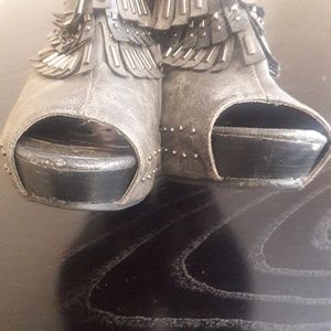Fringe High Heel Shoes with slight platform, some scuffs, worn several times and fair condition