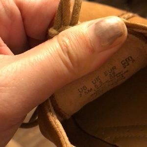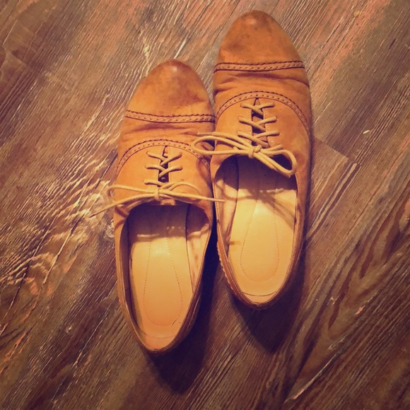 Oxford style shoes. Light brown.