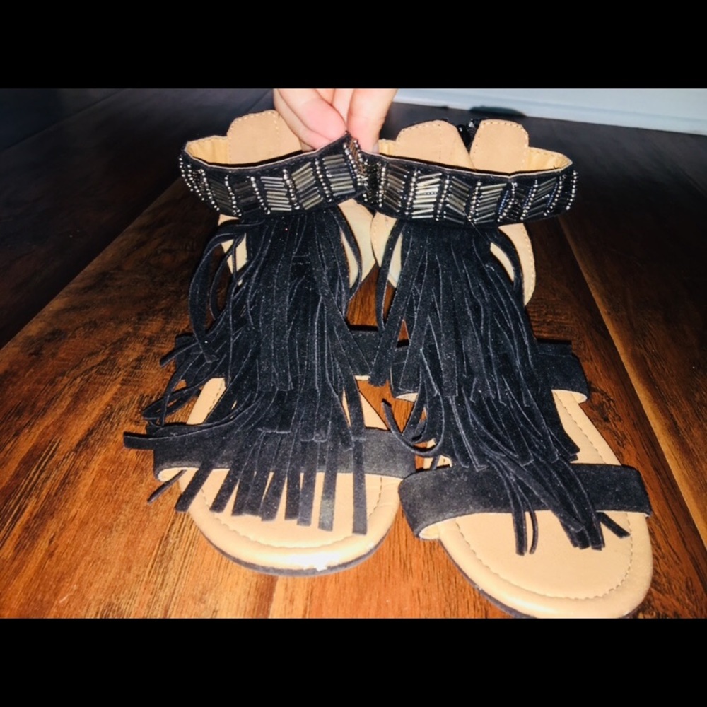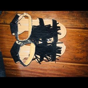 Black flats with black ruffles on top