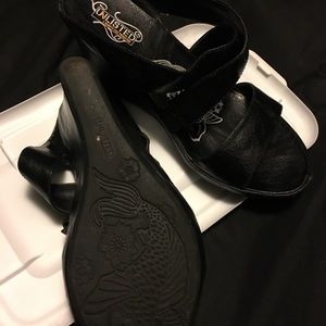 Slip on wedges leather look but no real leather worn only once