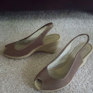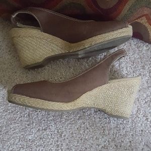 Beautiful wedge heel sandal. Open toe with small portion of back being elastic which gives the shoe a great fit, this avoids slipping of the heel. This shoe is very comfortable and will look great with your favorite jeans or sundress or whatever your heart desires.