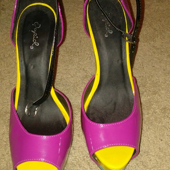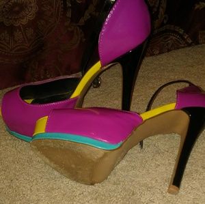 Size 9 multicolored heel made by Qupid slightly worn a very sexy heel that shows off your leg formation.